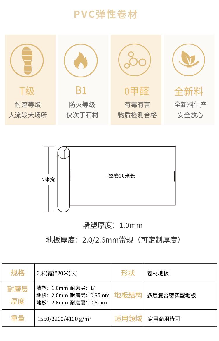 此系列厚度從2.0MM——3.0MM可定制生產,全新料、無毒無甲醛!防滑、耐磨、抗菌!支持現場抽檢!